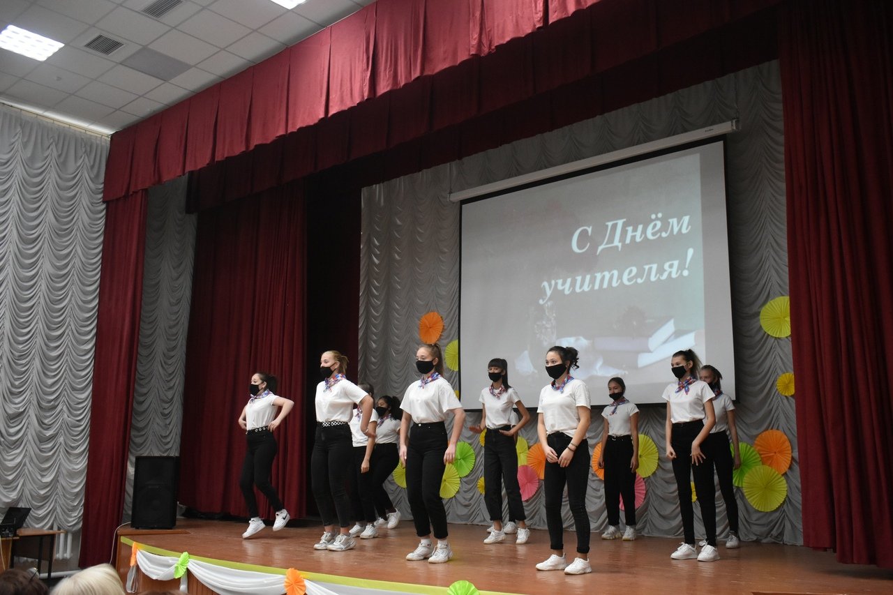 Во время концерта преподавателей порадовали номерами Алисия Голубь, учителя физической культуры, команда Dream team и другие... Все учителя остались довольны такими поздравлениями