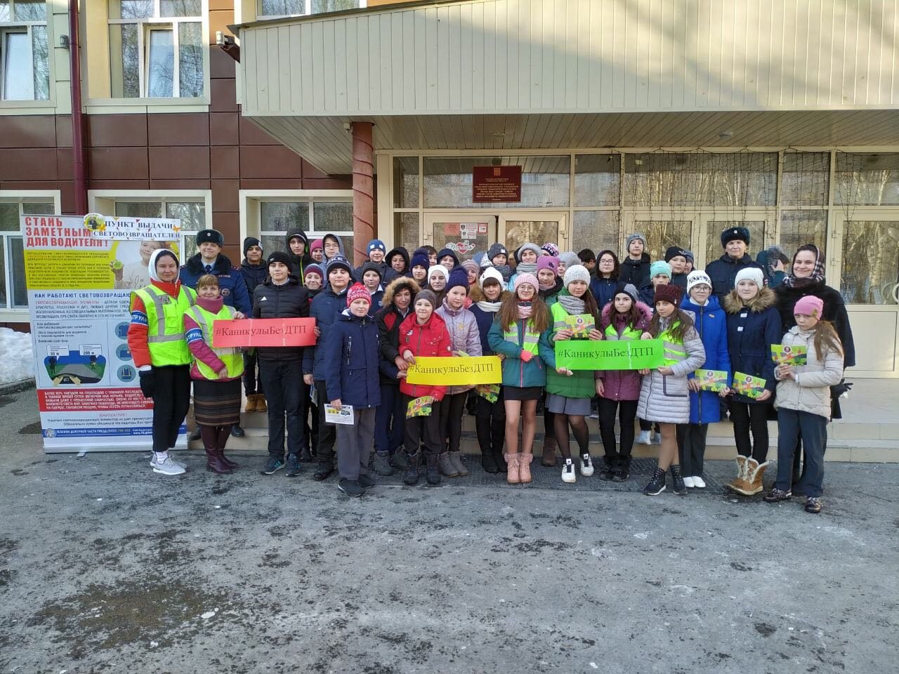 20.03.2019 в нашей школе отряд ЮИД вместе с сотрудниками ГИБДД, приняли участие во Всероссийской акции #КаникулыБезДТП, участникам акции на одежду наклеили светоотражающие элементы, рассказали о их пользе в темное время суток .