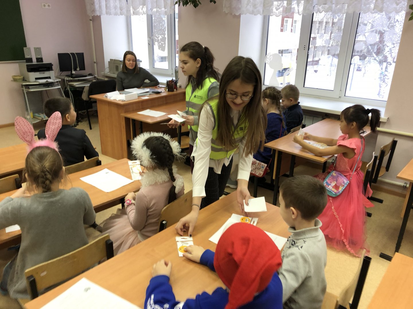 В канун новогодних праздников 27 декабря 2019 года, в рамках комплекса профилактических мероприятий «Внимание – каникулы!» отряд Юных Инспекторов Движения провел информационно-профилактическое мероприятие «Новогодний калейдоскоп» . Ребята рассказали о безопасных местах для зимних подвижных игр, о правилах перехода проезжей части, средствах регулирования, которые помогают осуществить движение пешеходу максимально безопасно, а также об использовании необходимых светоотражающих элементов на одежде и сумках в темное время суток.