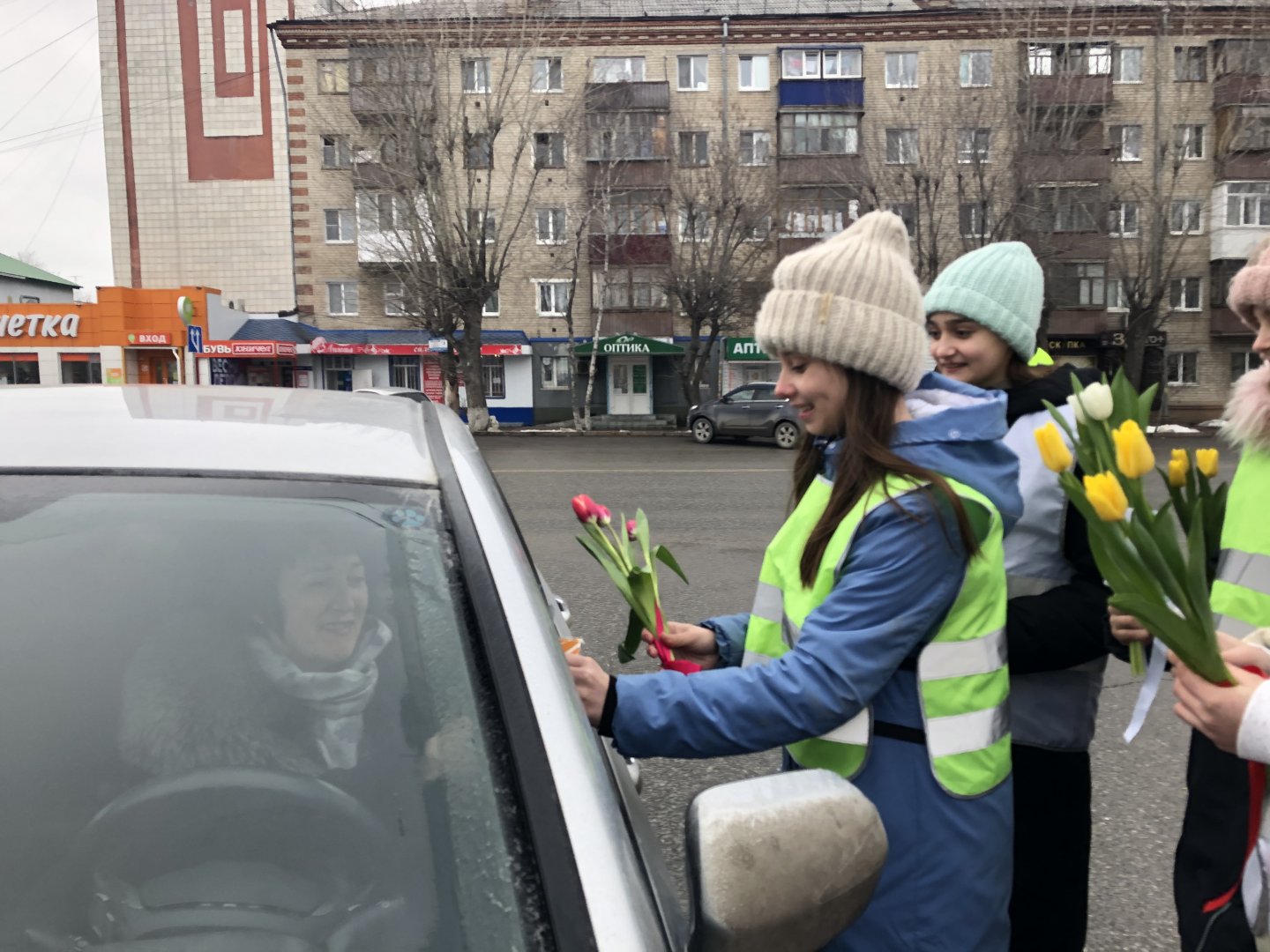 На территории школы после учебных занятий они провели поздравительную акцию «Всех женщин поздравляем – безопасности желаем!» для милых мам и бабушек. Встречая родителей - водителей и пешеходов, женщинам ребята читали стихи, вручали изготовленные своими руками открытки с пожеланиями солнечного настроения, благополучия, а также безопасных дорог. Госавтоинспекторы и школьники призывали милых дам соблюдать Правила дорожного движения, быть всегда предупредительными и взаимовежливыми на дороге. Особое их внимание обратили на использование детских удерживающих устройств при перевозке детей в автомобиле, а также светоотражающих элементов на одежде в темный период времени. С наилучшими пожеланиями всем вручили подарки, цветы и передали отличное праздничное настроение.